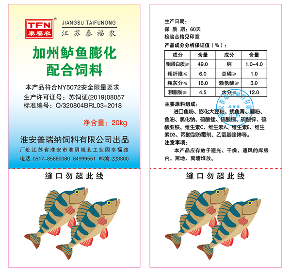 加州鱸魚、鱖魚 膨化配合飼料